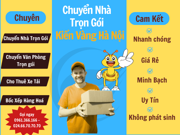 🏠 Dịch vụ chuyển nhà trọn gói Kiến Vàng chính hãng: chuyên nghiệp, uy tín. Cam kết giá rẻ, không phát sinh chi phí, bảo hiểm 100% đồ đạc. Liên hệ 0961366166 – 02466707070