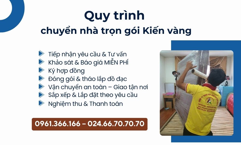 Một quy trình chuyển nhà trọn gói chuyên nghiệp tại Kiến Vàng được thực hiện qua các bước sau: